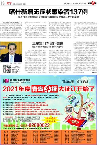 新华社乌鲁木齐10月25日电 喀什地区疏附县24日发现1例新冠肺炎无症状感染者后,新疆迅速对其密切接触者、密切接触者的接触者进行核酸检测,截至10月25日14时,检测出137人呈阳性,经专家诊断,均为无症状感染者。