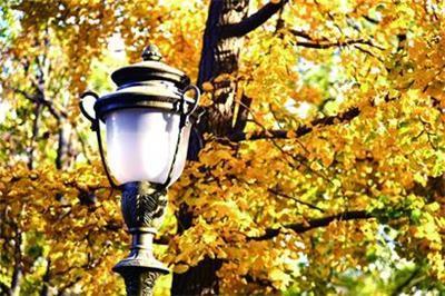 图2:坐在黄叶上休息,别有一番韵味。图3:路灯与黄叶相得益彰。