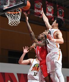 许家晗、张骋宇、赵泰隆、王庆明和赵戌宏组成国信海天队首发。首节比赛,国信海天队22:26落后。全华班出战,只落后4分,这样的开局对于国信海天队而言可以接受,毕竟两名外援还未出战。但次节上来,亚当斯如同梦游,在上场6分钟时间里,7次出手居然只得到2分,而吉林队则是抓住机会全力反击。斯蒂马克替换亚当斯上场,才算是稍微稳定了局面。赵泰隆压哨三分命中,半场结束,国信海天队44:58落后。第三节,国信海天队还是用全华班出战。没有了亚当斯的“浪投”,球队打得有板有眼,但吉林队命中率实在太高,始终无法缩小比分差距。带着16分的分差进入最后一节,球队把全部希望押在了亚当斯身上。上场后的亚当斯继续沉迷单打,7分钟内得到5分被再次替换下场。最终,国信海天队遭遇了一场21分的惨败。