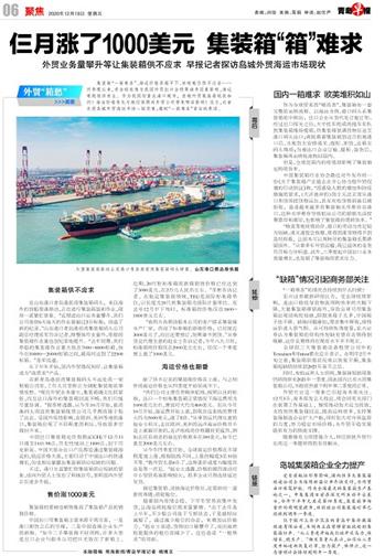 同时,有航运界人士预判,集装箱短缺现象仍将持续至2021年一季度,因此国内已有大的集装箱公司,不敢贸然接下明年第二季度的订单。