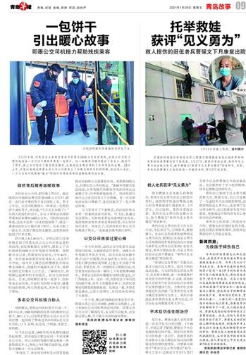 1月27日晚,市民孙女士在乘坐青岛市即墨区18路公交车时看到,当值公交司机习惯性地递给一名行动不便的男乘客一包饼干。这一细微举动瞬间感动了孙女士,她拍下了照片,配上文字发到了微信朋友圈里,没想到这条微信得到了许多网友的点赞。 28日上午,早报记者通过即墨永昌公交公司联系上了当晚当班的司机郑明辉。经过深入采访,一个公交车司机群体“接力”帮助外来残疾乘客的温暖故事浮出水面。