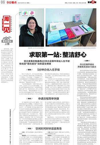 陶春燕表示,自己从未来过青岛,“青年驿站对我们外地来求职的学生来说很人性化,它让我们在陌生的城市有了一个落脚地,给我们接下来租房留下一个缓冲的时间,带来了很多便利。 ”
