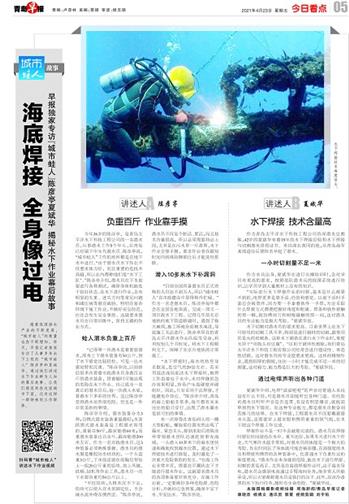 扫码看“城市蛙人”讲述水下作业视频水下焊接技术难度很大。