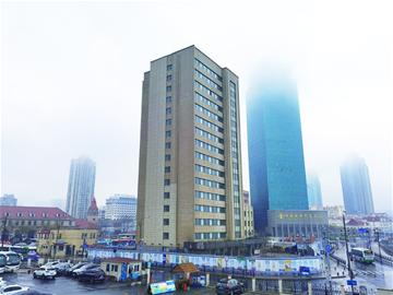 4月22日上午,记者在太平路上看到,海润大厦的周边已经被施工围挡包围,与隔壁原国风大酒店所在地连成一个工地,16层高的大楼内部已经基本搬迁一空,只剩下保安值守。