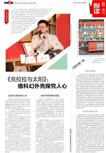 译者宋佥说,《克拉拉与太阳》这部科幻小说发生在年代与背景皆不详的未来美国,虽然涉及高科技和人工智能,但科幻仅仅是外壳,作家主要展现了人性的多样性。“最主要的是每个人通过克拉拉的视角,都要扪心自问一个问题,你相信有人心这回事吗?你相信是我们的心,让每个人成为独一无二的个体吗?我想这才是这本书的终极问题。 ”