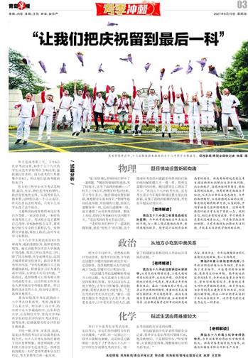 昨天是高考第三天,下午5点化学考试结束,10多个五十八中的学生从艺术学校考点飞奔出来,雀跃地拉住老师。因为选考的三科都集中在9日,所以他们的高考提前结束了!