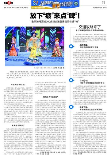 啤酒节期间,金沙滩路两侧严禁停放车辆,金沙滩啤酒城附近共设置停车场18处,提供车位近9000个。