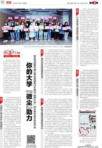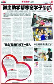 2010年8月,青岛早报和微尘基金首次举办大学生助学“圆梦行动”报道截图。