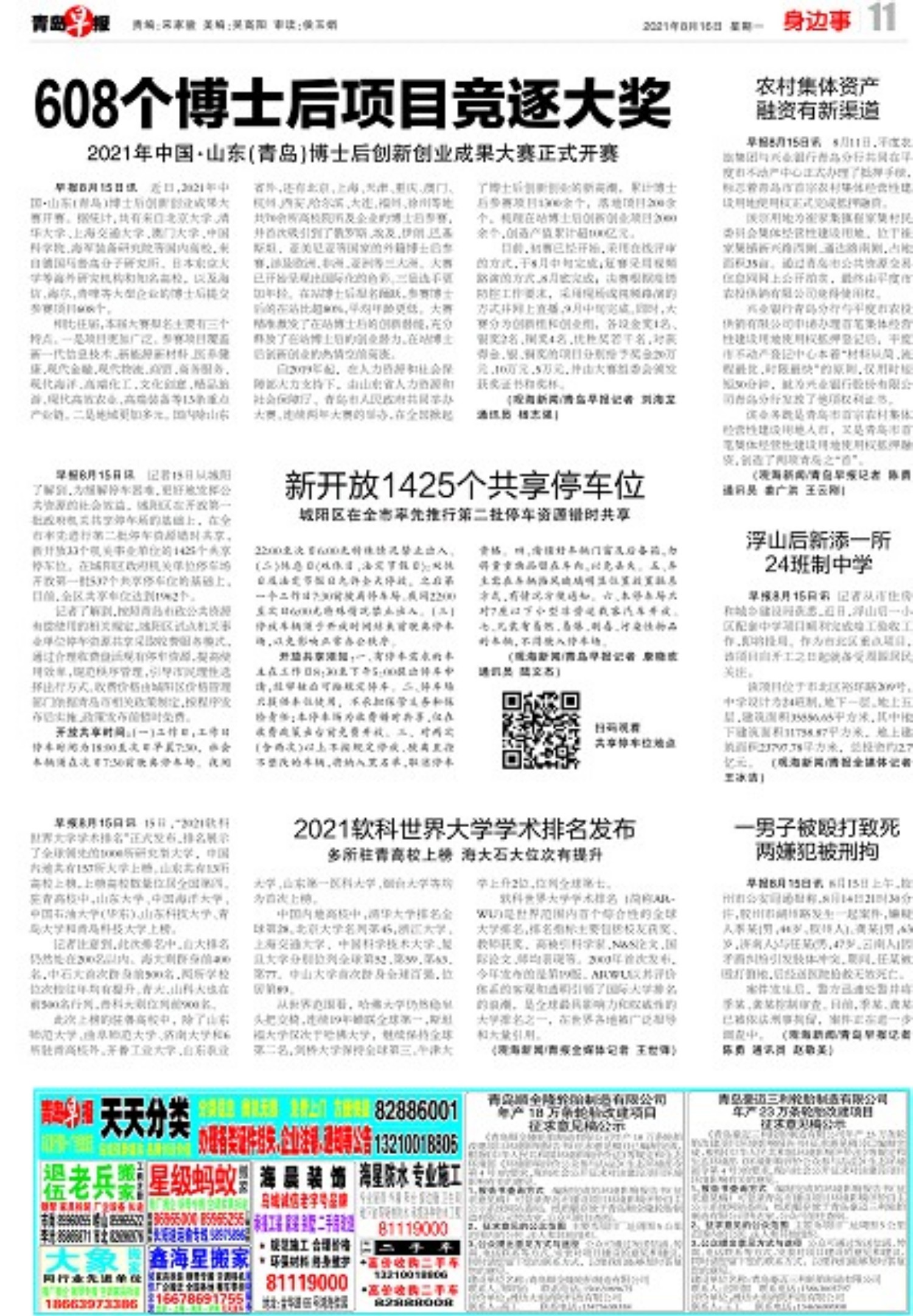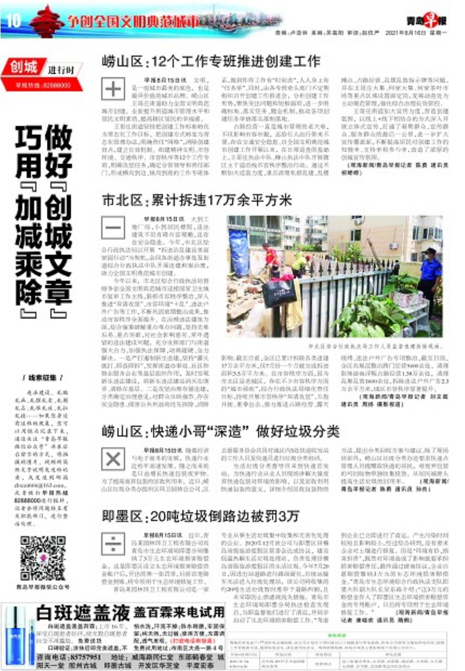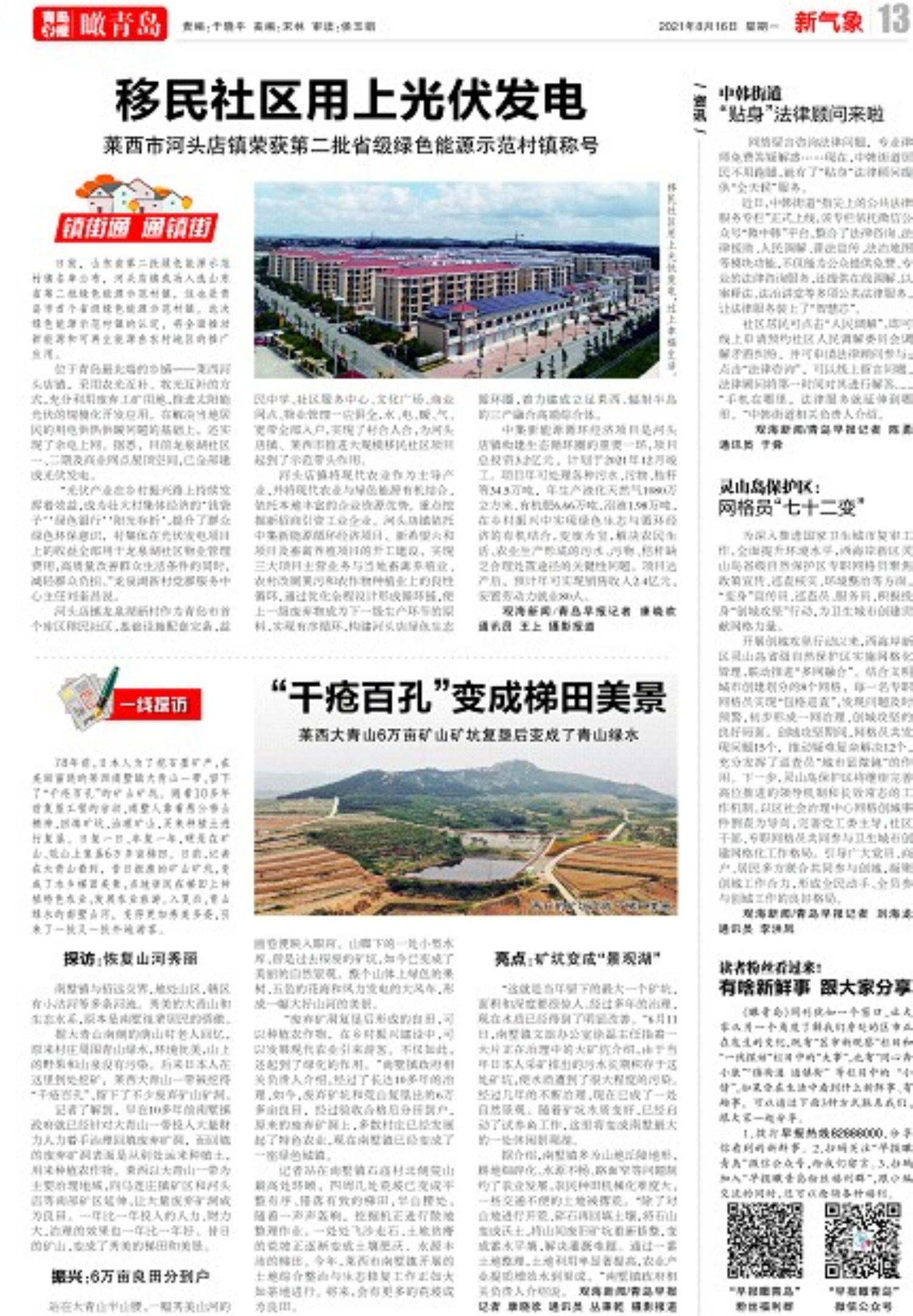 A01 头版 A02 划重点 A03 专题 A04 今日看点 A05 今日看点 A06 今日看点 A07 今日看点 A08 专题 A09 专题 A10 专题 A11 身边事 A12 瞰青岛 A13 新气象 A14 风景线 A15 世界观 A16 世界观