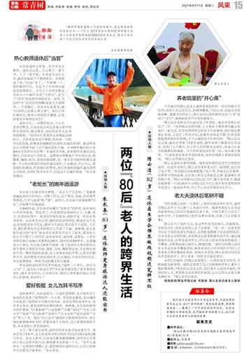 “看到早报在报纸上刊登的征集令,我也想讲讲我的退休生活……”近日,83岁的朱长春和82岁的隋云洁老人分别给早报热线82888000打来电话,想与大家分享一下自己快乐而充实的退休生活。