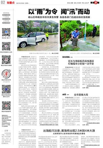 早报9月5日讯 5日晚,崂山区委副书记、区长王锋在现场调度防汛工作时强调,近期崂山区持续降雨,防汛形势十分严峻。各级各部门要把人民群众生命财产安全放在首要位置,坚决克服麻痹大意思想,杜绝任何侥幸心理,压紧压实各环节责任,全力做好防汛抢险准备,严防出现人员伤亡事故。