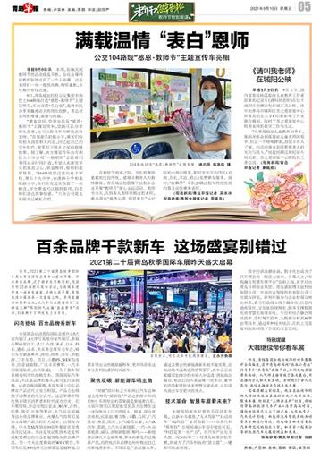 9日,青岛城运控股公交集团市南巴士104路线打造“感恩·教师节”主题宣传车,车内设置“告白板”,邀请市民分享有趣或动人的师生故事,表达对老师的尊重、感谢与祝福。