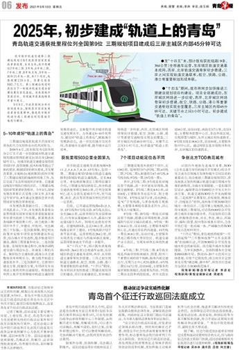 从国内外地铁先进城市来看,TOD(公共交通为导向的城市开发模式)综合开发正成为引领城市发展和提升空间品质的重要动力。结合地铁三期建设规划项目,青岛地铁正加快构建以轨道交通引领城市发展的新格局,为城市发展赋能。一是加强顶层设计,编制青岛市TOD综合开发五年行动方案、轨道交通TOD综合开发战略规划。二是按照“先期策划、系统规划、精准设计、功能复合”原则,高标准开展TOD项目城市一体化设计。三是开展土地梳理,结合我市地铁三期规划,对沿线TOD综合开发潜力地块实施分级分类。四是加快项目落地,积极推进市南、市北、李沧、崂山、西海岸、城阳、即墨、胶州等区域重点项目,力争尽快打造一批站城一体、产城融合的TOD开发示范标杆项目。