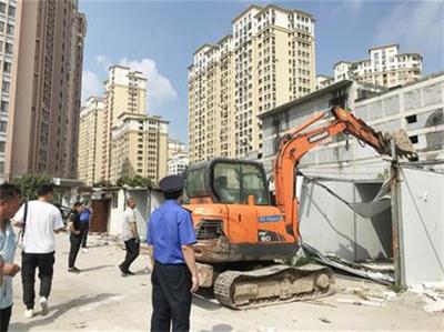 早报9月9日讯 9月9日上午,在市北区综合行政执法局的指导下,延安路街道组织执法人员、施工单位,拆除了明霞路与标山路路口附近一处占地700多平方米的违法建筑。
