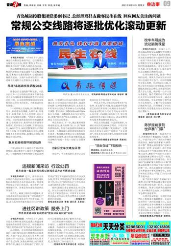 早报9月9日讯 9月9日下午,青岛城运控股集团党委副书记、总经理邢昌友做客民生在线,围绕“聚焦主责主业,赋能美好出行”主题,与网民在线交流。