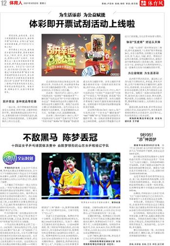 活动第一周(9月17日-23日),用户可选择试刮 “进球啦”“爱赢爱冰雪”“一蹴而就”“全民运动”和“为中国力量加油全运会”等5款体育运动类主题即开票。体育运动类主题即开票,展现了运动场上健儿们的飒爽英姿,也号召社会大众积极参与全民健身,打造更健康的生活方式。体育融入生活,造就健康体魄。