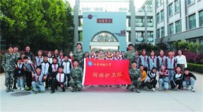 “山东科技大学国旗护卫队成立于2002年,19年里,他们坚持每日训练,坚持用脚步丈量每一寸土地,用汗水滴灌每一份艰辛,圆满完成了多次校内外重要国旗升降任务。年均训练和服务时长达650小时。 ”据山科团委实践与权益部副部长张昔玉介绍,这群国护队的学生,主要负责学校国旗的升降和维护,承担校内外重大活动的志愿礼宾任务和国旗文化宣讲活动,是山科爱国主义教育和学生思想政治教育的重要阵地。为了提升国旗护卫队的组织力和战斗力,多次到天安门国旗班和北京大学、中国海洋大学等高校进行交流学习;带头建立驻青高校国旗护卫队联盟,加强校际之间共建共商共享。