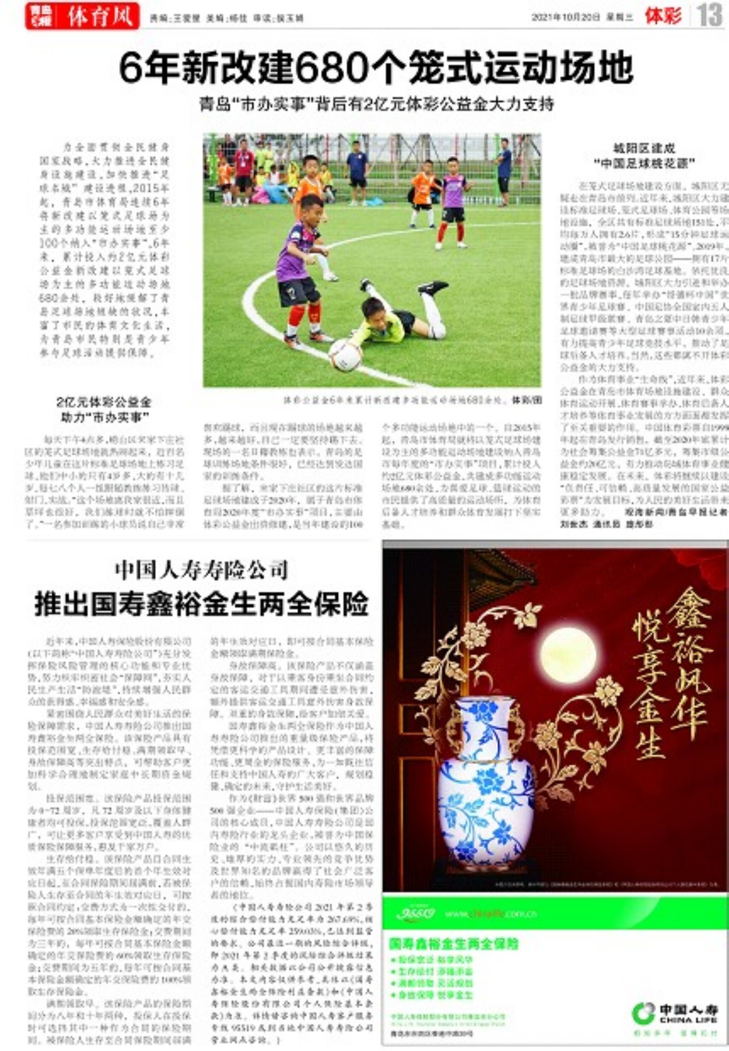 6年新改建680个笼式运动场地