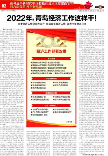 会议指出,今年将召开党的二十大,做好经济工作意义重大。要坚持以习近平新时代中国特色社会主义思想为指导,深入学习贯彻党的十九大和十九届历次全会精神,全面落实习近平总书记对山东、对青岛工作的重要指示要求,深入落实中央和省委经济工作会议精神,锚定 “走在前列、全面开创”“三个走在前”总遵循、总定位、总航标,聚焦省委“六个一”发展思路、“六个更加注重”策略方法、“十二个着力”重点任务,弘扬伟大建党精神,坚持稳中求进工作总基调,完整、准确、全面贯彻新发展理念,积极服务和融入新发展格局,全面深化改革开放,坚持创新驱动发展,推动高质量发展,坚持以供给侧结构性改革为主线,统筹疫情防控和经济社会发展,统筹发展和安全,继续做好“六稳”“六保”工作,聚焦有效需求牵引、实体经济振兴、新旧动能转换、重大战略落实、民生改善和共同富裕,踔厉奋发、善作善成,勇当龙头、争先进位,加快建设现代化国际大都市,以优异成绩迎接党的二十大胜利召开。