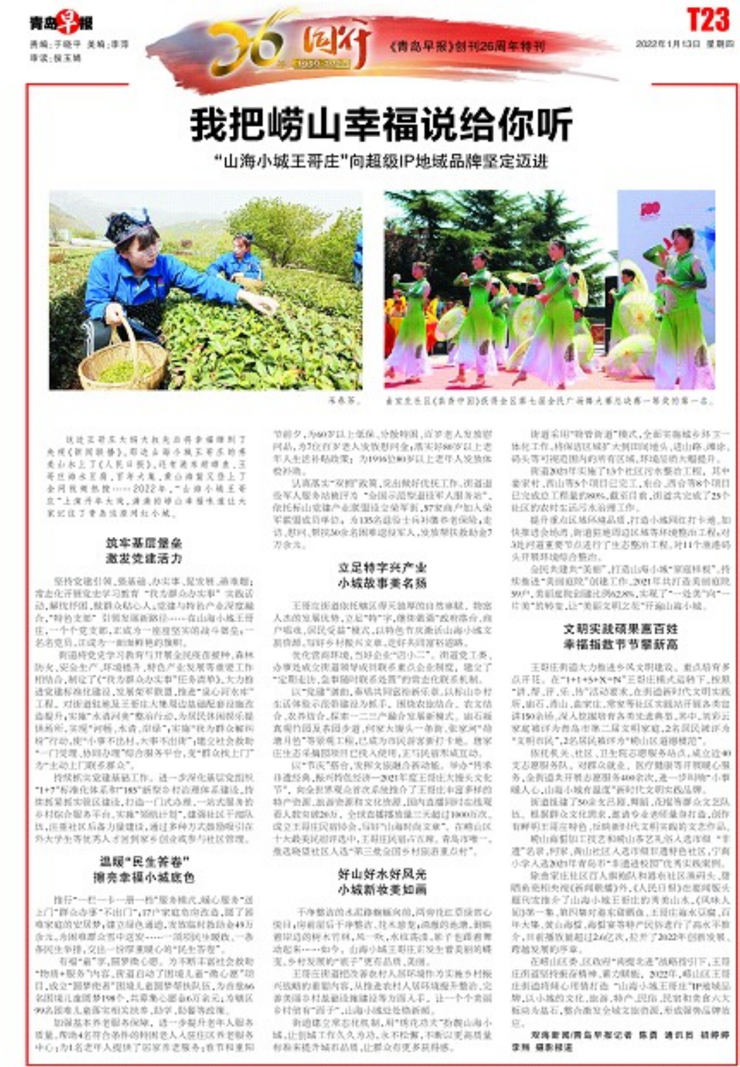 这边王哥庄大妈大叔先后将幸福晒到了央视《新闻联播》,那边山海小城王哥庄的秀美山水上了《人民日报》,还有港东甜晒鱼、王哥庄海水豆腐、百年大集、黄山海蜇又登上了全网视频热搜……2022年, “山海小城王哥庄”上演开年大戏,满满的崂山幸福味道让大家记住了青岛这座网红小城。