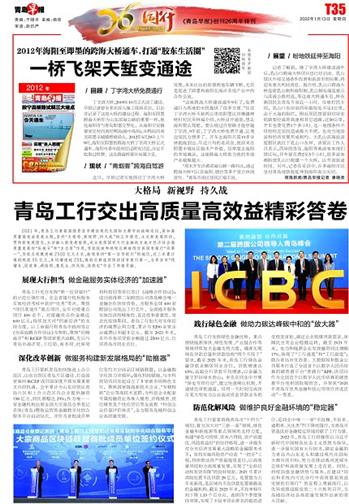 2021年,青岛工行紧紧围绕青岛市建设现代化国际大都市的战略定位,紧扣高质量高效益发展主题,坚持“大格局、新视野、持久战”的工作理念,立足新发展阶段,贯彻新发展理念,主动融入新发展格局,充分发挥国有大行金融助力地方经济社会高质量发展的“压舱石”和“主力军”作用,贷款投放和纳税总额继续位居国有银行“双第一”,贷款总规模突破2500亿元大关,继续保持“第一信贷银行”的地位,近三年累计缴纳税款55亿元,年均增速超25%,缴纳总额连续保持国有银行第一,为青岛市“稳增长、促改革、调结构、惠民生、防风险、保稳定”作出了积极贡献。