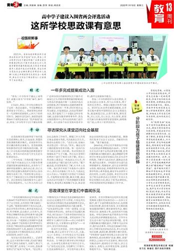 给高中生讲思政,怎样才能讲得生动有趣,真正让青年学子们入耳、入脑、入心?在青岛二中分校党总支书记崔虹琳看来,学校政治组不仅研发了特色学科活动,又不断进行教学研讨和实践活动。比如将党史教育进行项目式学习,“云”游党史纪念馆、为党撰写三行情书、红色旅游路线设计,学生组织成立星火宣讲团,在本学期面向全校师生推出建党精神主题系列宣讲活动……在深入实践中,除了丰富的模拟政协活动,包括模拟政协校赛、政协委员指导、学生模拟提案选题调研撰写、模拟新闻发布会、模拟界别讨论、提案展示等,还依托校外实践基地,学校自2016年起开展青岛市中级人民法院法律课题基地活动,引导学生在生活中善于运用法律发现问题、思考问题和解决问题的意识,不断学习法治知识、提升法治素养。学校还自2018年开始,深入开展学宪法讲宪法活动,多人在全国知识竞赛、演讲比赛、微视频大赛中获奖。“学校拥有‘造就终身发展之生命主体’的教育理念,政治组秉持‘法道、精致、高端’的理念,让每位学生在创新化、精品化的实践活动中,提高综合学习能力、语言交流能力、表现力,培养理性思维、创新思维提供平台。 ”崔虹琳说道。