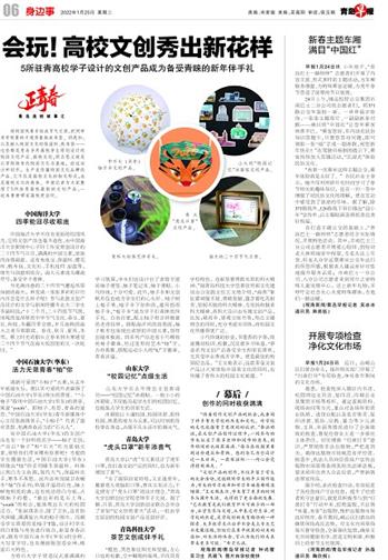 “为了提倡自觉防疫,又正逢虎年,戴着虎头虎脑的口罩,喜庆又有活力,于是便有了‘虎头口罩’的设计理念。”青岛大学创新创业学院老师牟子元说。据了解,日前,青岛大学创新创业联合会举办了首届“定义你的青大”活动,一批由学生原创的校园文创产品受到好评。