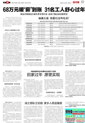 为扎实推进根治欠薪冬季专项行动,进一步畅通投诉举报渠道,凝聚根治欠薪合力,自2021年12月20日起至2022年春节前,青岛市根治拖欠农民工工资工作领导小组将组织人社、住建、交通、水务、工会、公安等相关部门在全市范围内开展根治欠薪冬季专项行动集中联合接访。