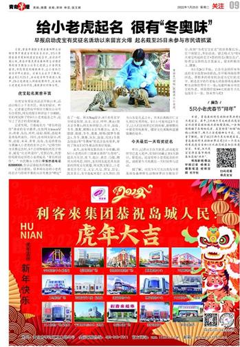 昨日,记者从主办方获悉,活动起名环节已进入尾声,有效时间截止到1月25日,即是说,还没有给小老虎起名的市民,请抓紧今天的最后一天时间参与活动。
