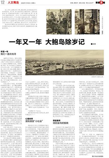 这么多年,循着旧时习惯,燃纸奉香,把新桃换旧符与旧岁说再见。有几年,我父亲亲历过大鲍岛的年。在青岛的家里,有一张被我放大的照片。父亲不在镜头里,那一年,那几年,他在青岛过年。一年又一年,我在异乡也终成老客。不过,在青岛生活近二十年,我却从未在这里过年。每每除夕夜,在故乡寿光的烟火里,我都习惯念着苏轼的《守岁》那几句守岁——“儿童强不睡,相守夜欢哗。坐久灯烬落,起看北斗斜。明年岂无年,心事恐蹉跎。努力尽今夕,少年犹可夸。”