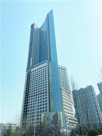 该项目开工不到半年的时间,突然停工,2011年项目重新开工,一直到2013年的6月项目成功封顶。记者注意到,早在2009年项目开工时,项目标称高度为228米,位列当时在建的海航万邦中心之后。而在项目封顶时,建筑共70层,高度变成了241.85米,超过海航万邦中心,成为了青岛当时最高的摩天大楼。