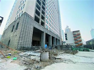 记者在工地外围转了一圈,从远处看整个建筑已竣工,外立面和玻璃幕墙几乎全部安装到位,只有建筑外墙还有少数区域裸露着水泥和框架。