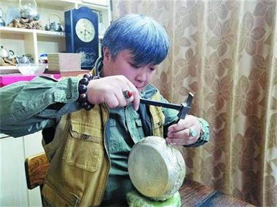 陈大雷告诉记者,从他爷爷的爷爷那辈起,他们陈家人就靠着这门手艺养家糊口。“家里一直就是干这行的,我能学会这门手艺,也是靠着从小耳濡目染来的。”陈大雷告诉记者,自己开始接触锔艺,其实也来源于一次偶然的机会。 “小的时候,有一次邻居大姨家里的面盆碎了,就拿到我们家想让我爸给帮忙锔锔,但是刚巧我爸不在家,我又是刚放学,写完作业后,我就拿起盆想研究研究。 ”陈大雷说,“家里的工具都是现成的,以前我爷爷、我爸干活的时候我都在旁边看过,虽然没自己动过手,但多多少少懂一点。我就从抽屉里拿出已经打好的锔钉,回忆我爸干活时候的样子,给做起来了。 ”