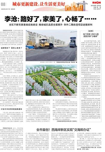 早报3月16日讯 完善的基础设施是实现城市载体功能的保证,是城市宜居水平的体现,也是让群众幸福感倍增的基础保障。近日,李沧区认真贯彻落实全市城市更新和城市建设三年攻坚行动重大决策部署,以创建文明典范城市为抓手,继续完善城市基础设施,增强城市的服务功能和城市综合承载能力,推动城区品质不断突破、全面提升。
