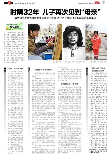 “很感谢青岛市退役军人事务局、青岛日报社发起的公益活动,感谢青岛大学美术学院水彩专业研究生武天隆帮我母亲绘制画像。 ”黄玉芹烈士的儿子蒲晓飞说。早报记者分别采访了蒲晓飞和武天隆,了解了黄玉芹烈士的红色事迹。