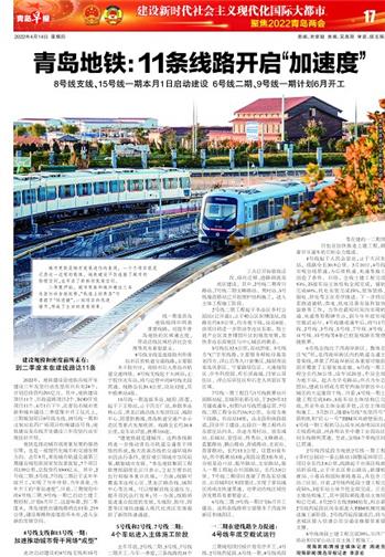 地铁是推动城市高质量发展的强劲引擎,也是一座现代化城市的交通发展方向。去年9月,青岛城市轨道交通第三期建设规划获国家发改委批复,7个项目共139公里,总投资约1000亿元。其中,2号线二期、5号线、7号线二期已于去年年底开工,实现了当年申报、当年获批、当年开工的“青岛速度”。目前,三期规划中的6号线二期、9号线一期已启动土建工程招标,计划6月开工。这意味着,到二季度末,青岛地铁在建线路将达11条、219公里,建设规模和密度前所未有,进入全新的发展空间。