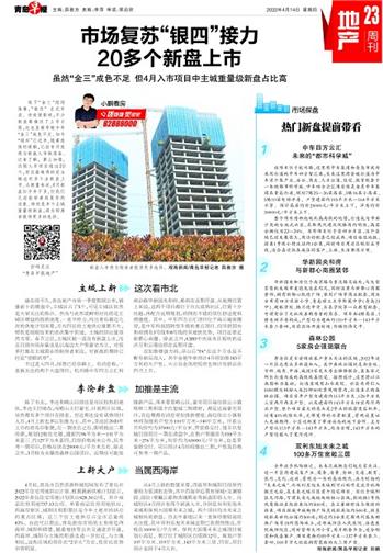 眼下“金三”刚刚落幕,“银四”正式开启。受疫情影响,不少新盘都推迟了上市日期,这也直接导致今年“金三”成色不足。如今“银四”已过半,随着疫情的缓解,已经有开发商为新盘入市做准备。记者了解,算上加推,近期入市项目超过20个,而且最难得的是主城也有多个全新盘上市。从数量来说,4月新盘似乎并不多,但我们已经能够看到复苏的迹象。特别是多个主城重量级新盘,将为购房者提供更多的选择。扫码关注“青岛早报地产”新盘入市将为购房者提供更多选择。观海新闻/青岛早报记者 薛雅方 摄