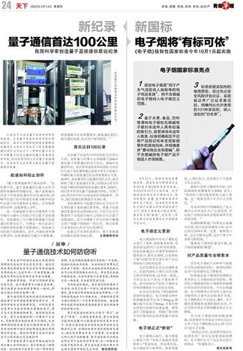 4月12日,国家市场监督管理总局、国家标准化管理委员会批准《电子烟》强制性国家标准,自2022年10月1日起实施。电子烟国家标准对电子烟的设计、原材料使用、组建、技术要求等多方面作出了规定。标准规定所有的电子烟产品都必须依照国标进行生产,对电子烟的定义提出更新,要求电子烟“断甜”,对年轻人吸引力颇大的各类调味电子烟将成为过去式。