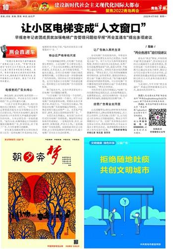 “我建议电梯间每天循环播放的广告换成公益人文类。 ”早报“两会直通车”自4月11日开通以来,截至目前已汇集了数百条市民意见和建议。其中,青岛早报老年记者团的成员积极参与互动,踊跃拨打早报热线电话、在早报微信公众号留言,提出了许多宝贵的建议。