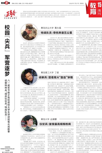 勇敢无畏是青春的模样,投笔从戎是高校大学生的担当。每年,全国高校都有应征入伍的大学生,他们带着参军报国的情怀,暂时告别校园,来到部队,经历磨炼与蜕变,成为一名合格的军人,退役后再重返校园。记者探访得知,驻青高校的校园里卧虎藏龙,就有这样一些退役尖兵,他们中有特种兵、国庆仪仗兵、特战队员……如今,他们离开了绿色军营,在大学校园里继续逐梦。