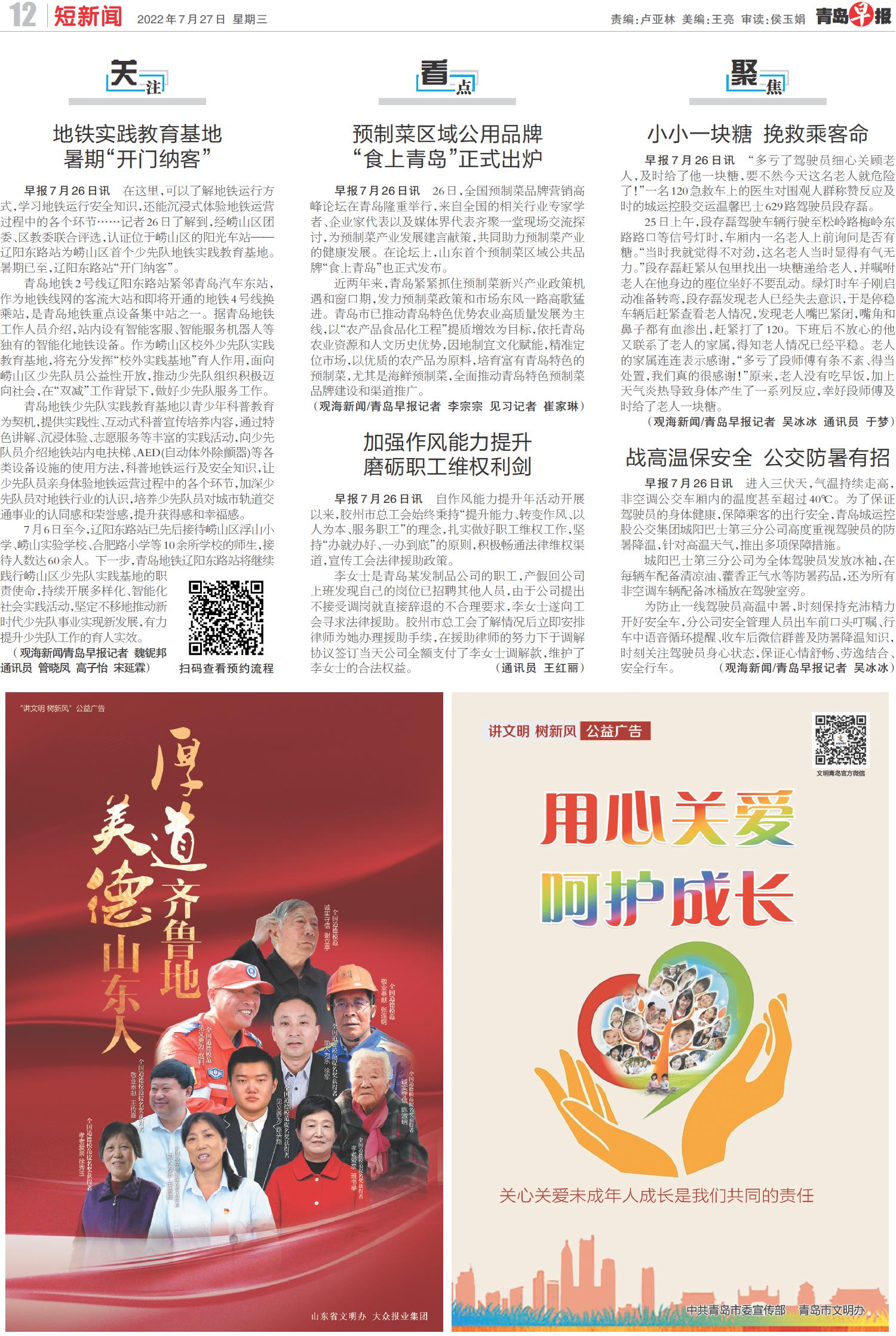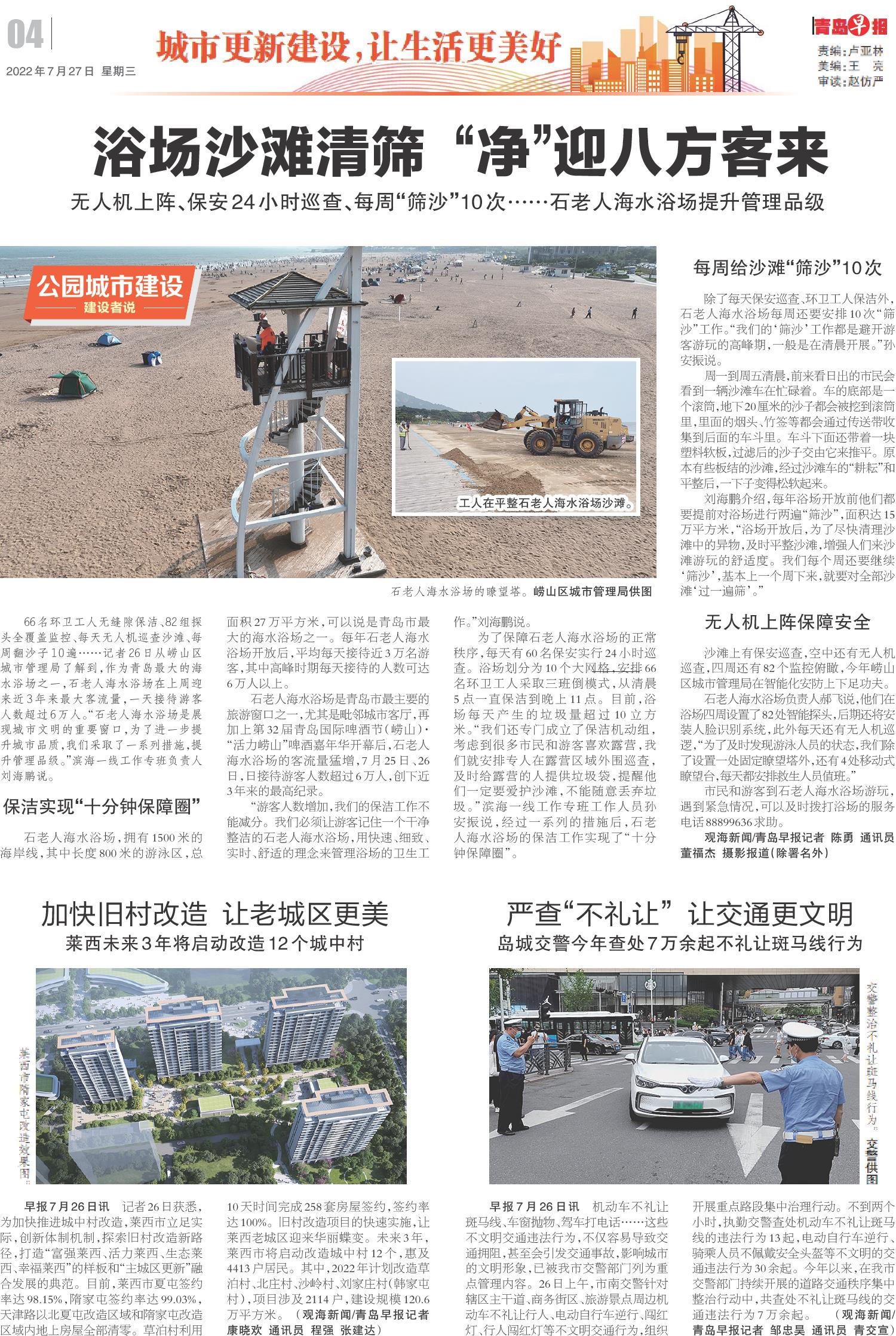 A01 头版 A02 城市更新建设,让生活更美好 A03 城市更新建设,让生活更美好 A04 城市更新建设,让生活更美好 A05 与世界干杯 第32届青岛国际啤酒节 A06 一线探访 A08 一线探访 A09 着力解决堵的问题 持续整治乱的现象 扎实做好美的文章 争创全国文明典范城市 A10 身边事 A11 法治 A12 短新闻 A13 体育风 A14 观赛台 A15 教育 A16 校园