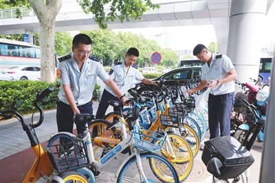 共享单车作为一种新型公共交通工具,随借随停,特别便捷,但乱停乱放的现象也随处可见。“萤火之光”志愿者们积极行动起来,前往城阳人民医院、水悦城、家佳源等站点,对周边道路随意停放的共享单车摆放整齐,还细心地用抹布把共享单车座椅、把手擦拭干净,让道路变得整洁有序,市民使用也更方便。青年志愿者孙九庆表示:“文明骑行,从我做起,不应该让单车成为共享路上的障碍,大家一起努力将身边小事做好,争当文明人。”