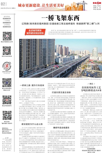 昨晨7时,青岛快速路网交通中的“第二横”——由青岛地铁集团负责建设的辽阳路(南京路至福州路段)交通结建工程主线桥通车,这是今年以来全市首个实现主线通车的市级市政道路建设重点项目。
