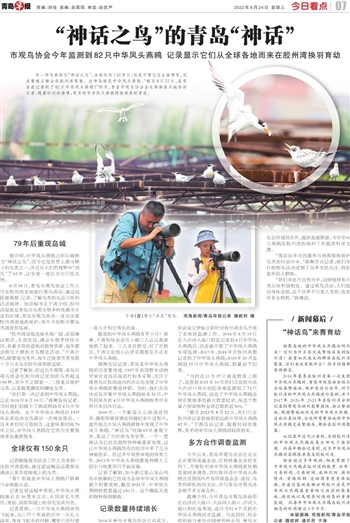 记者了解到,经过长年观察,青岛市观鸟协会在胶州湾记录到的鸟类超过150种,其中不乏国家一、二级重点保护鸟类,以及极度濒危和濒危鸟类。
