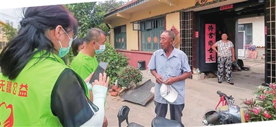 志愿者找到王延芳烈士的亲属王兆玉(右)。