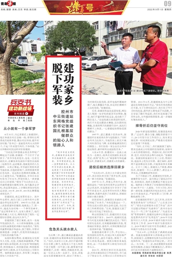 “我爷爷是支前民兵,在解放青岛战役中多次抢救伤员、运送粮食。爷爷曾经讲过,他一直梦想着当兵。从小听爷爷讲红色故事,我也萌发了当兵的梦想,最终圆了爷爷和我的梦想。”胶州市中云街道站东网格党组织书记张建国说道。当兵四年后,张建国转业回到地方,成为了一名“兵支书”,他时刻保持军人的本色,继续发扬部队的优良传统,带领乡亲们建设新农村,让村庄成为青岛市“文明社区”“山东省卫生村”。今年,张建国获得2022年度“青岛市优秀兵支书”。