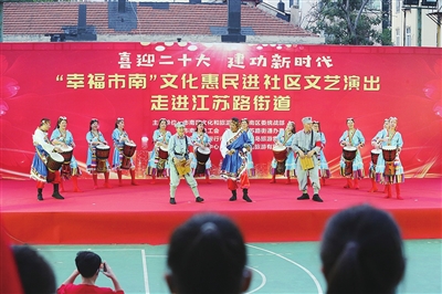 8月31日晚,由市南区江苏路街道办事处、市南区文化和旅游局、市南区委统战部、市南区总工会共同主办的“幸福市南”文化惠民进社区·走进江苏路街道文艺演出举办。居民们欢聚一堂,唱起动人的歌谣,跳起欢快的舞蹈。