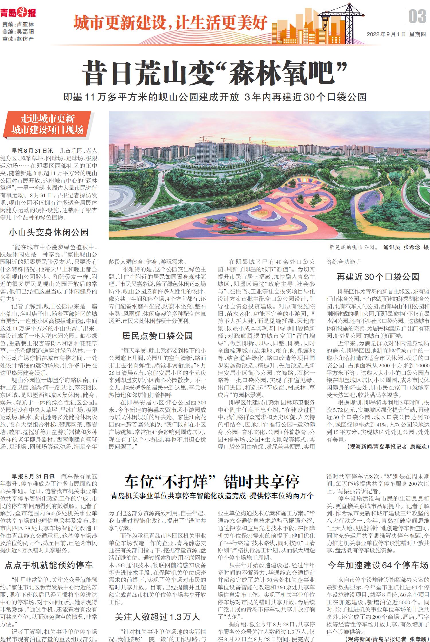 昔日荒山变“森林氧吧” 车位“不打烊” 错时共享停