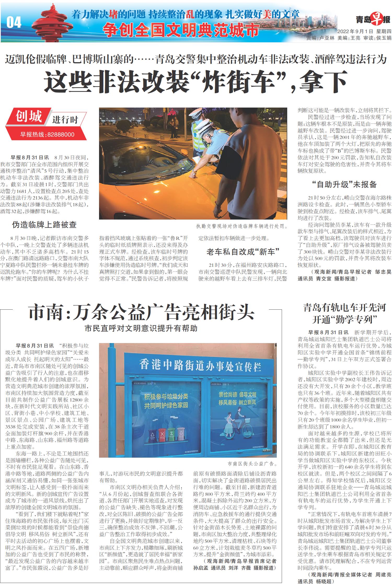 这些非法改装“炸街车”,拿下 市南:万余公益广告亮相街头 青岛有轨电车开先河开通“勤学专列”