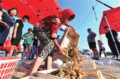 休渔,让海洋得到休养生息。守护,让海洋生物来青岛安家。对岛城市民来说,这是特别期待的日子,9月1日开海,意味着黄渤海长达4个月的伏季休渔期正式结束,属于青岛人的“海鲜自由”又回来了!开海当天下午,第一批近海渔船已陆续返回,带来丰厚的渔获。一筐筐、一桶桶,鱼虾满舱,满载而归。码头上,是早已等候的前来抢购的市民。各类海鲜上岸,泛着耀眼的光泽,带着浓厚的海洋气息,或被市民抢购,或被运到四面八方的市场。